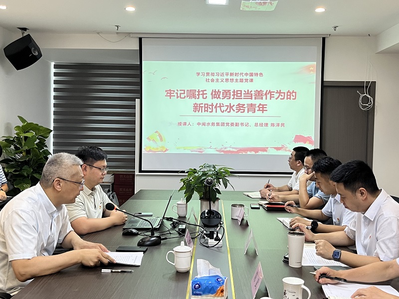 7月10日上午,中閩水務(wù)集團黨委副書(shū)記、總經(jīng)理陳澤民到中閩建工公司,以《牢記囑托 做勇?lián)斏谱鳛榈男聲r(shí)代水務(wù)青年》為題,向中閩建工公司全體黨員干部職工講授主題教育專(zhuān)題黨課。
